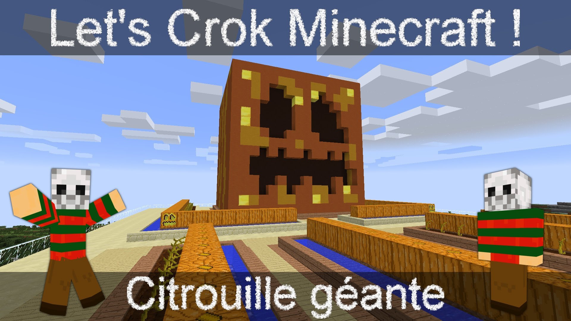 Description: A minecraft video game with a man in a red and green striped shirt and a woman in a red and green striped shirt.