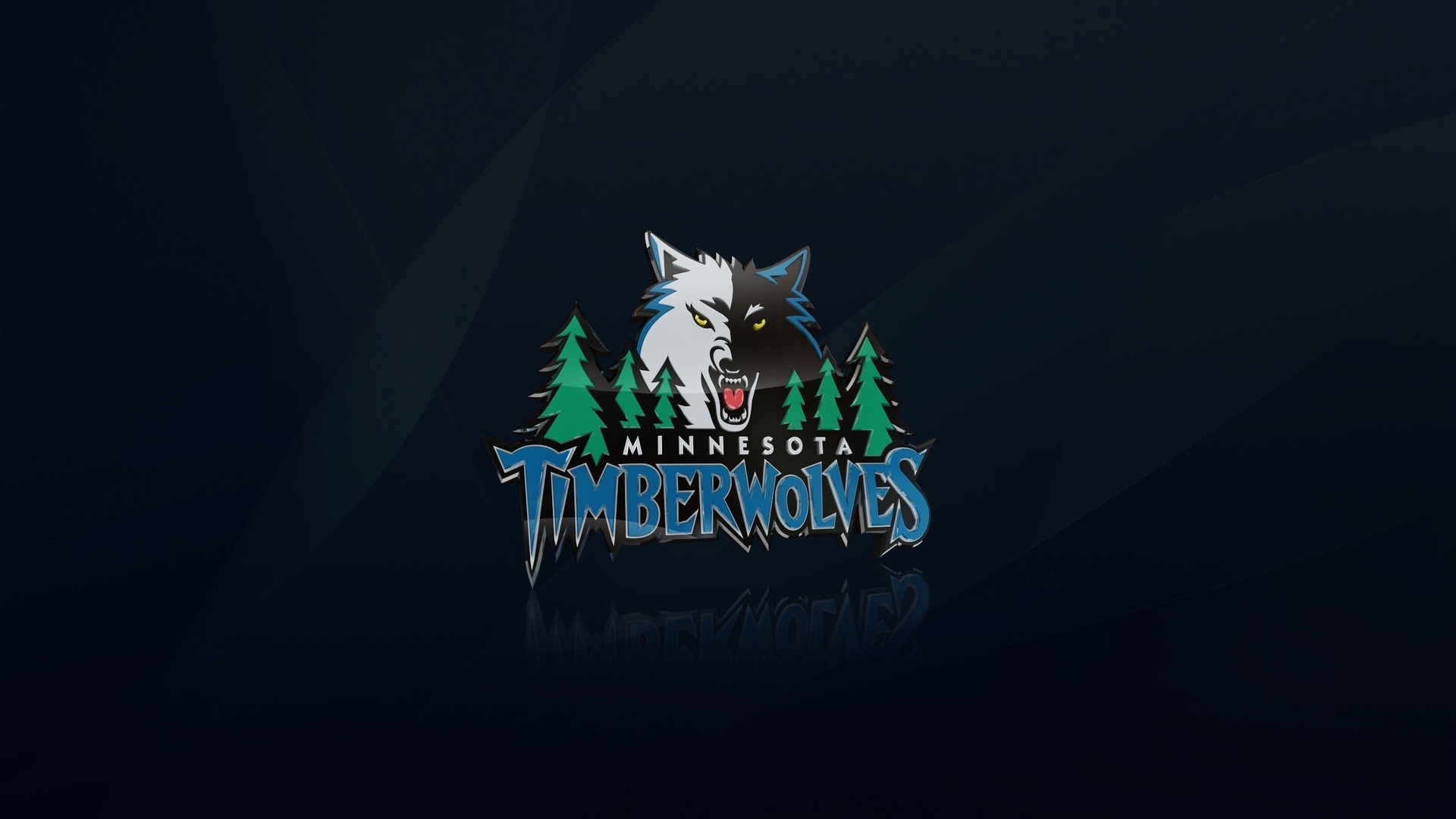 Description: A logo for minnesota timbers with a wolf on it's face and trees in the background.