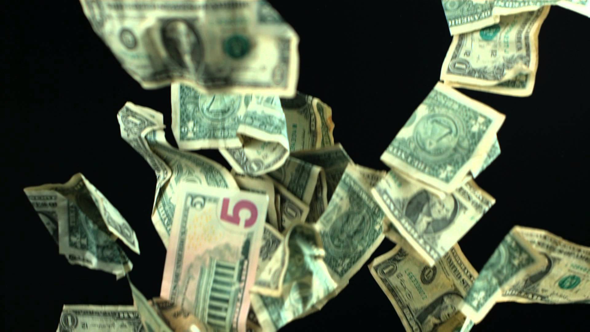 Description: A bunch of money falling into the air with a black background and a black background behind it.