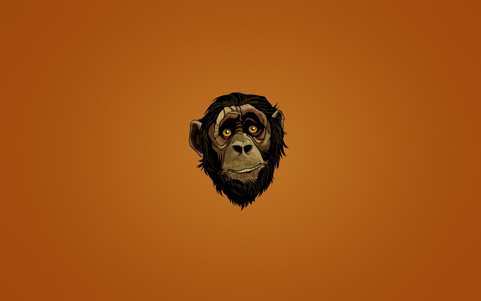 Description: A monkey with a face on an orange background with a black nose and a black nose and a brown background.