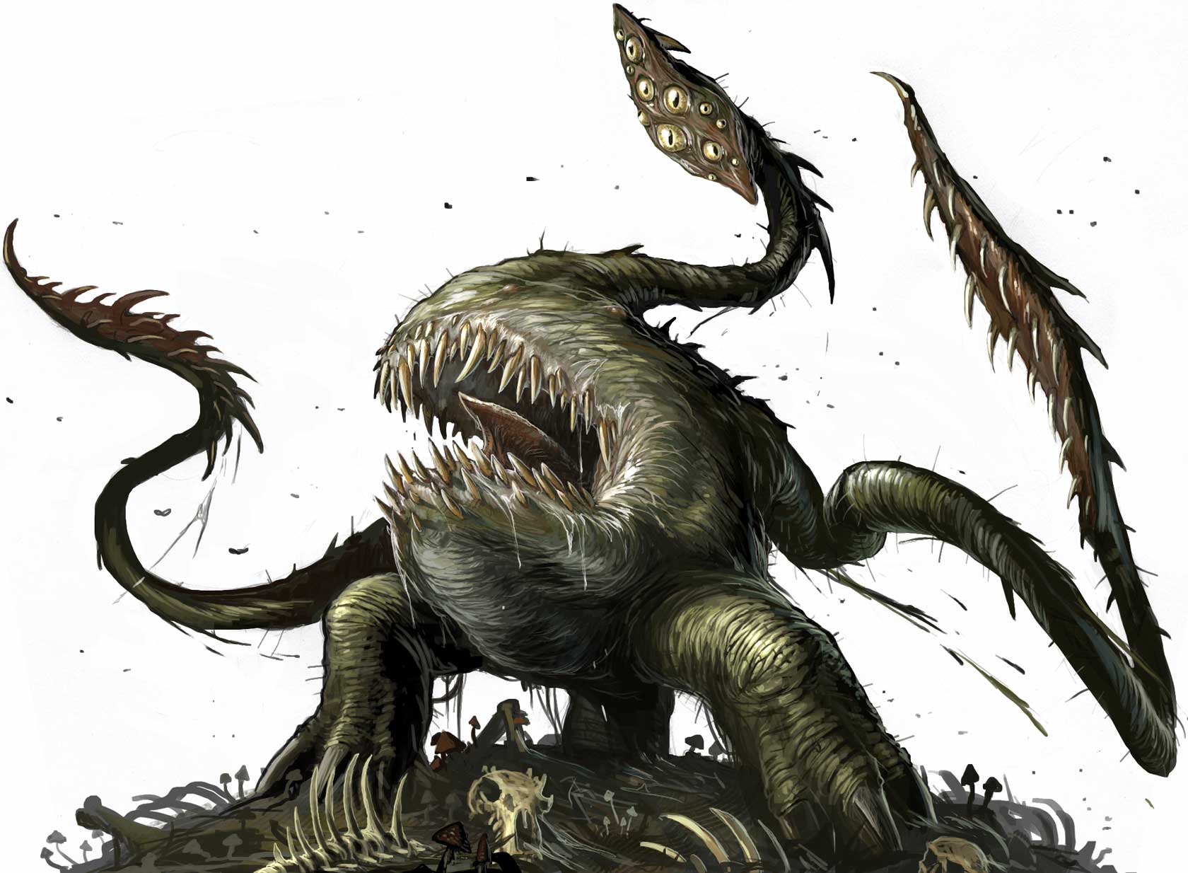 Description: A drawing of a monster with large teeth and sharp teeth.