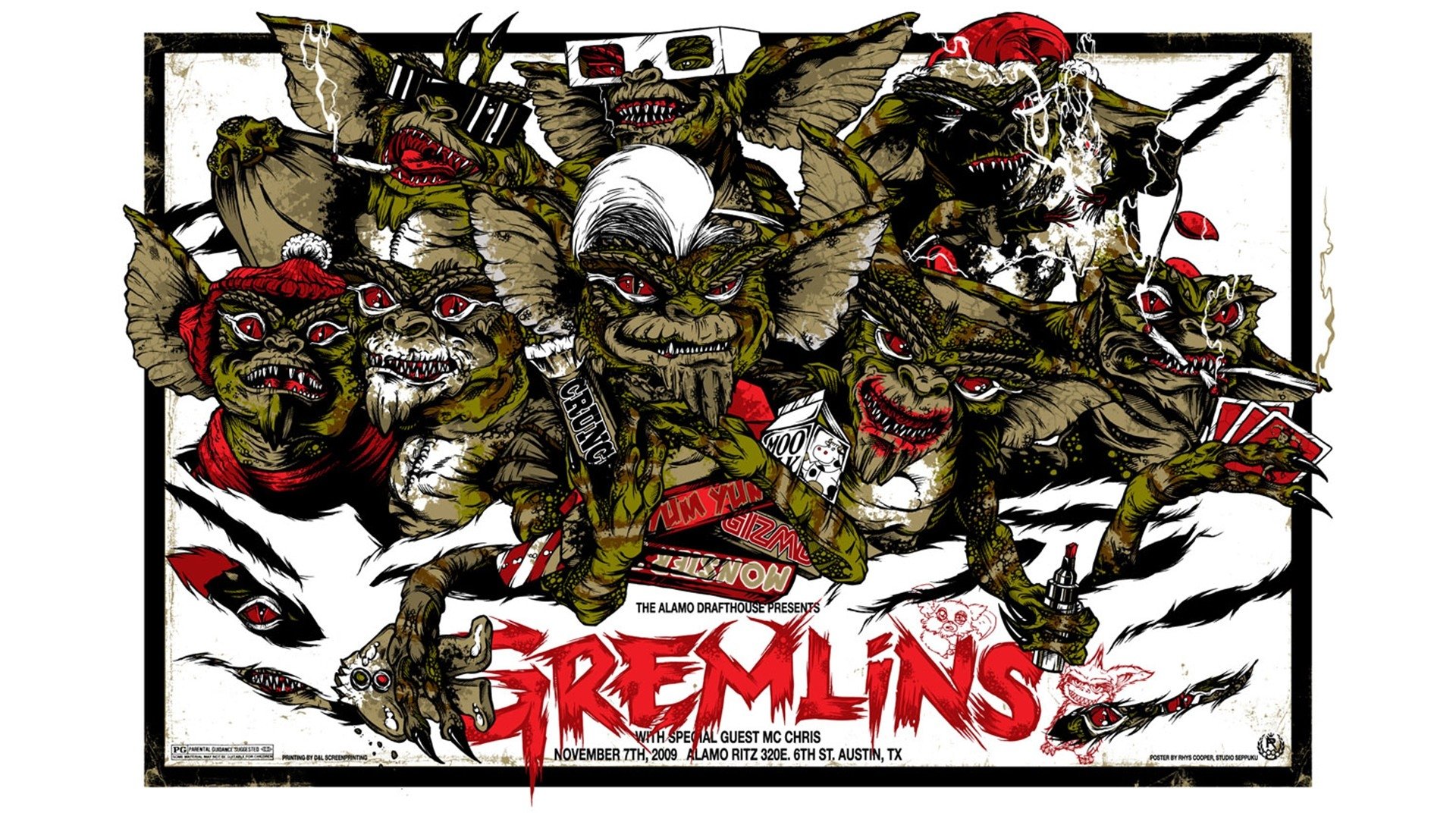 Description: A group of monsters riding on top of each other on a white background with red lettering on it that says screaming.