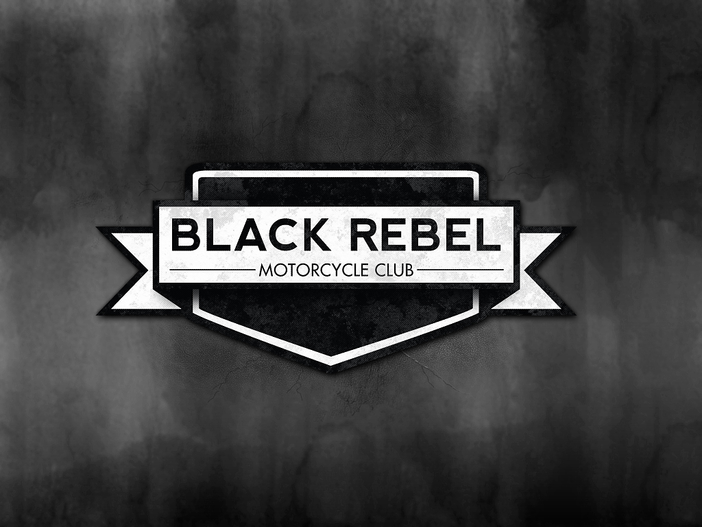 Description: A black and white photo of a motorcycle club logo on a wall with a black background and white lettering.