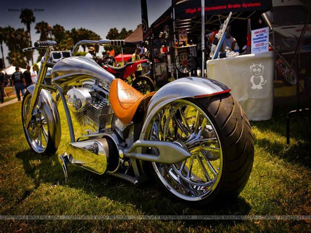 Description: A motorcycle parked on top of a lush green field next to a tent with people standing around it on a sunny day.