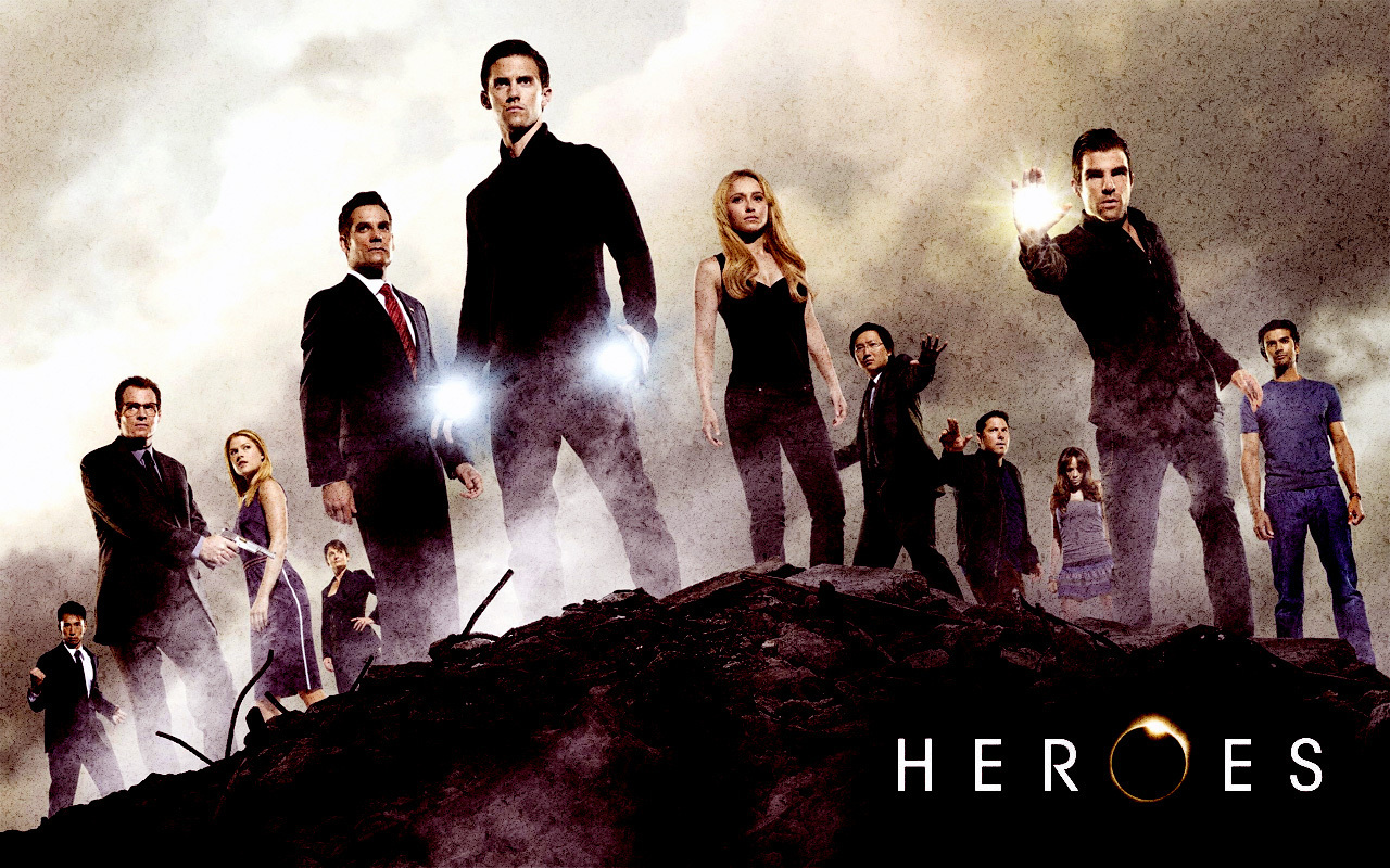 Description: A group of people standing on top of a mountain with a sky background and a title for the series.