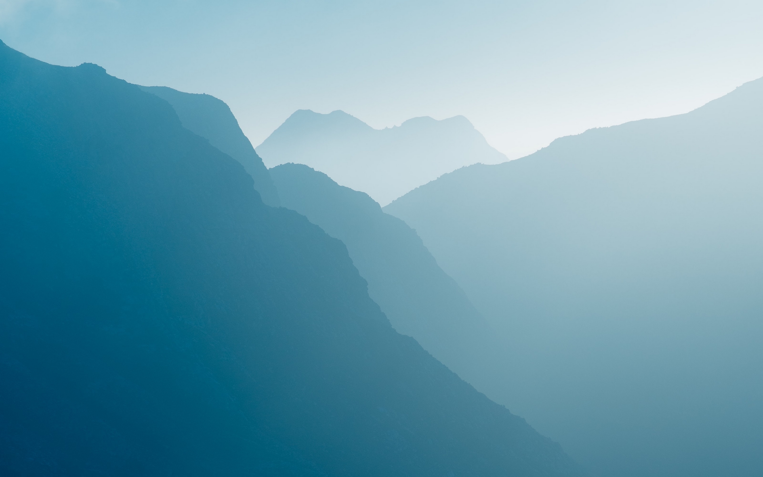 Description: A mountain range with a few clouds in the sky above it and a bird flying over it in the foreground.