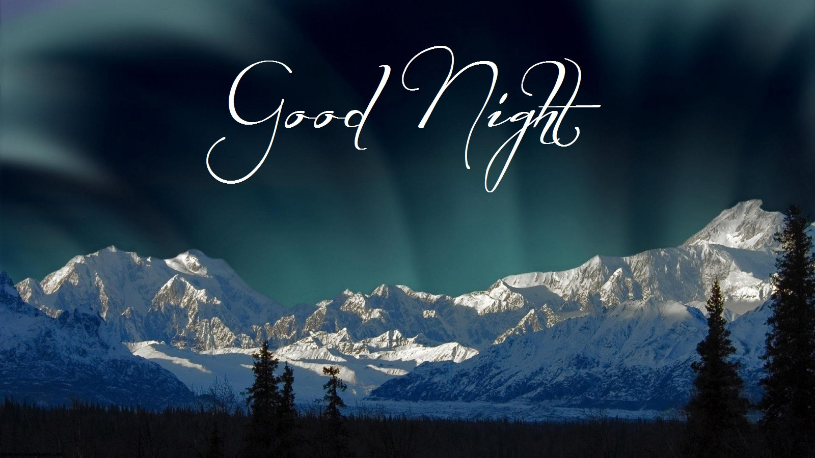 Description: A picture of a mountain range with the words good night written in it and a sky background with the words good night.