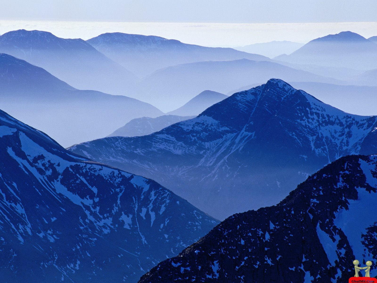 Description: A mountain range with a red bench in the foreground and a few mountains in the background with a few clouds.