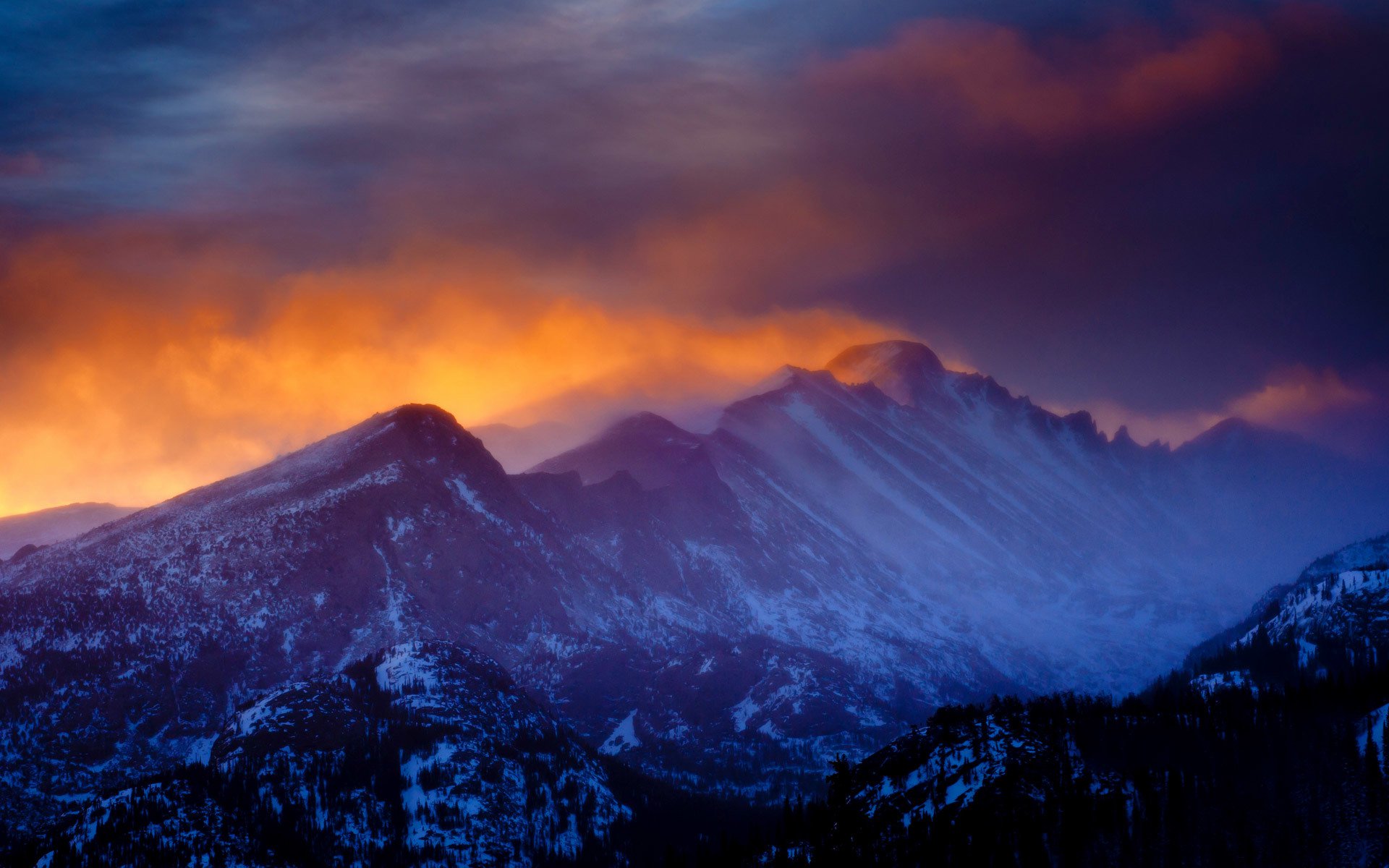 Description: A mountain range with a sunset in the background and clouds in the sky above it.