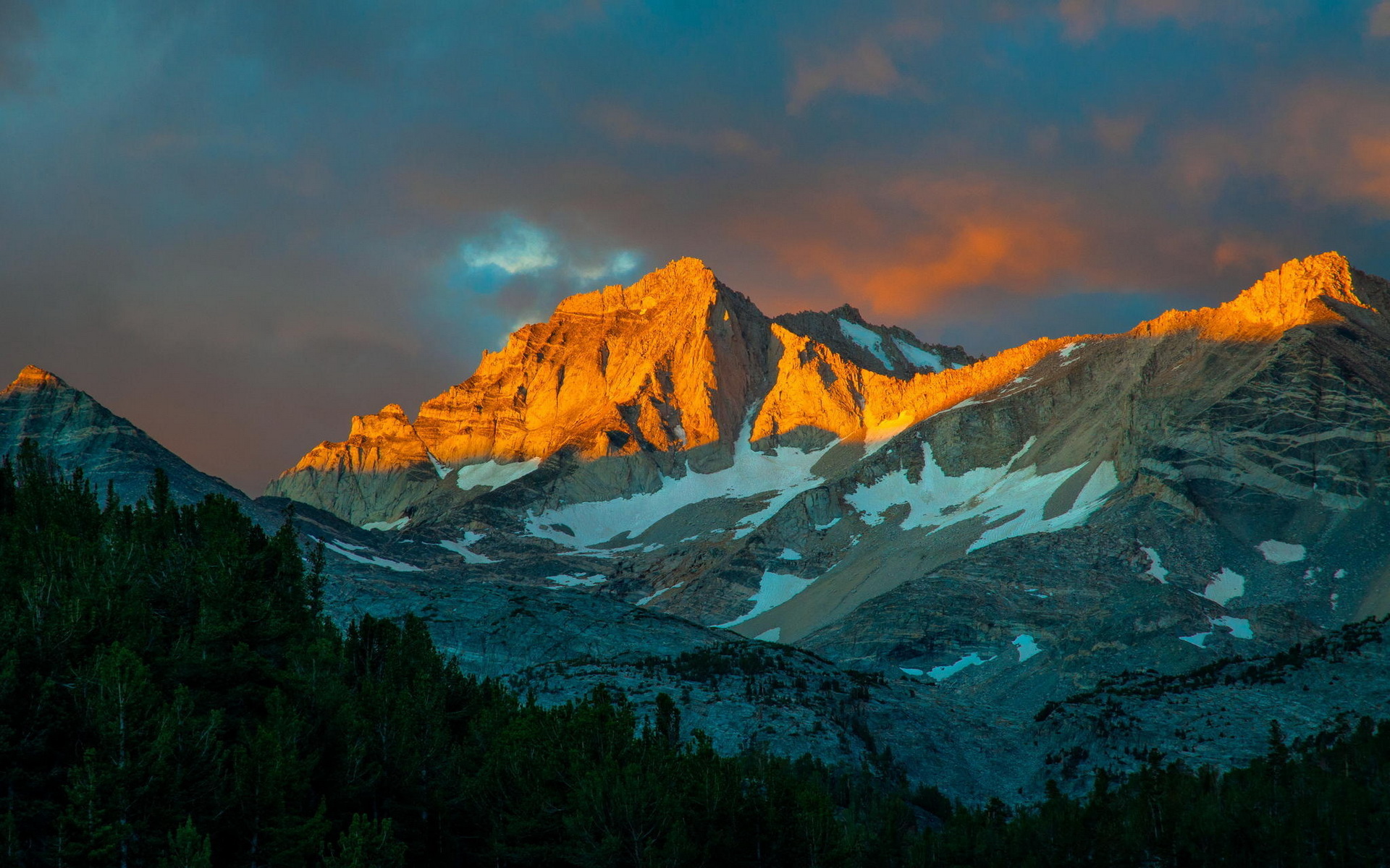 Description: A mountain range with a sunset in the background and clouds in the sky above it.