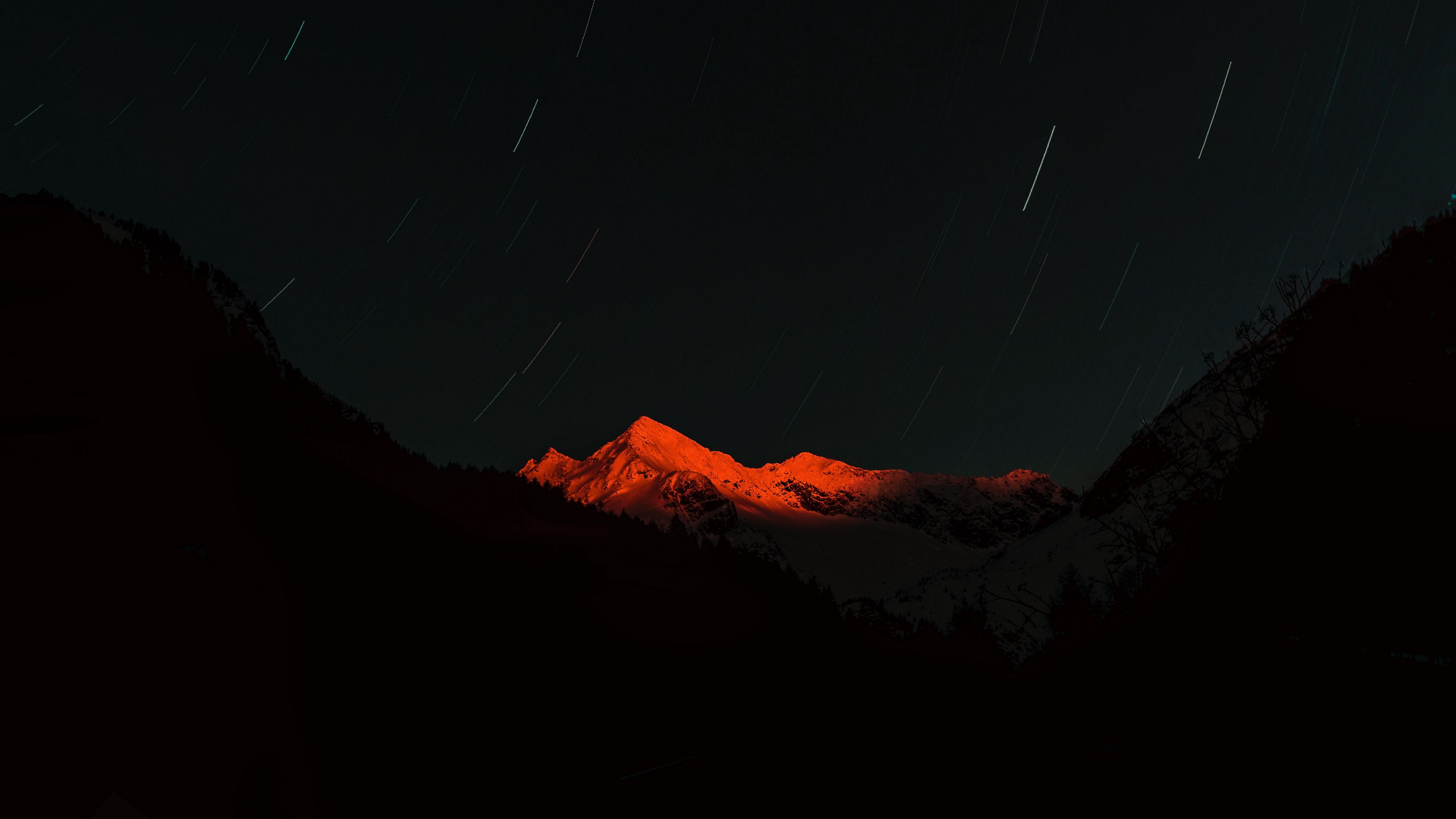 Description: A mountain with a star trail in the sky above it and a star trail in the sky above it.