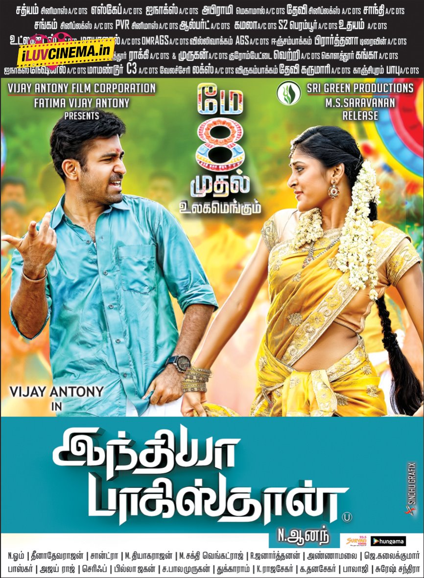 Description: A movie poster with a man and woman holding hands and a man in a blue shirt and a woman in a yellow saree.