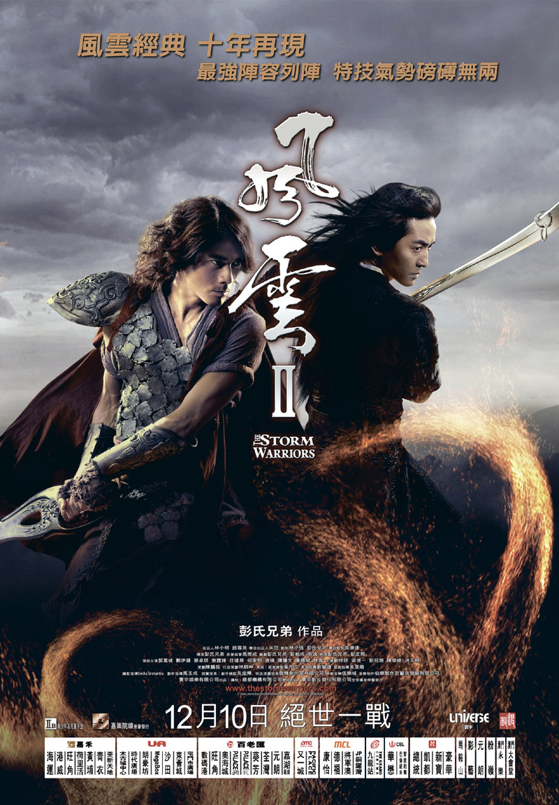 Description: A movie poster with a man and woman on a horse in the background with a sky background and clouds.