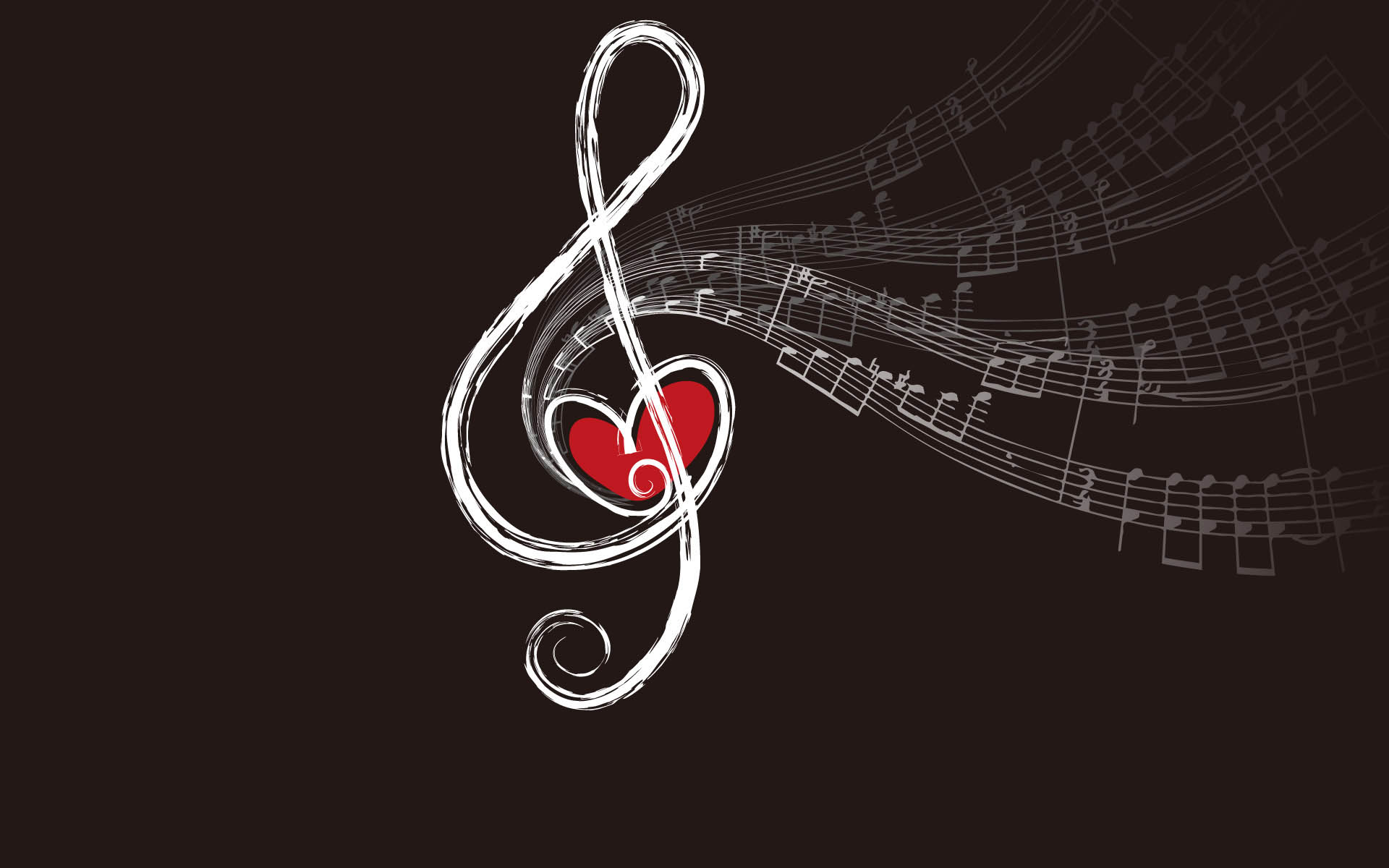 Description: A musical note with a heart on it and music notes in the background with a red heart on it.