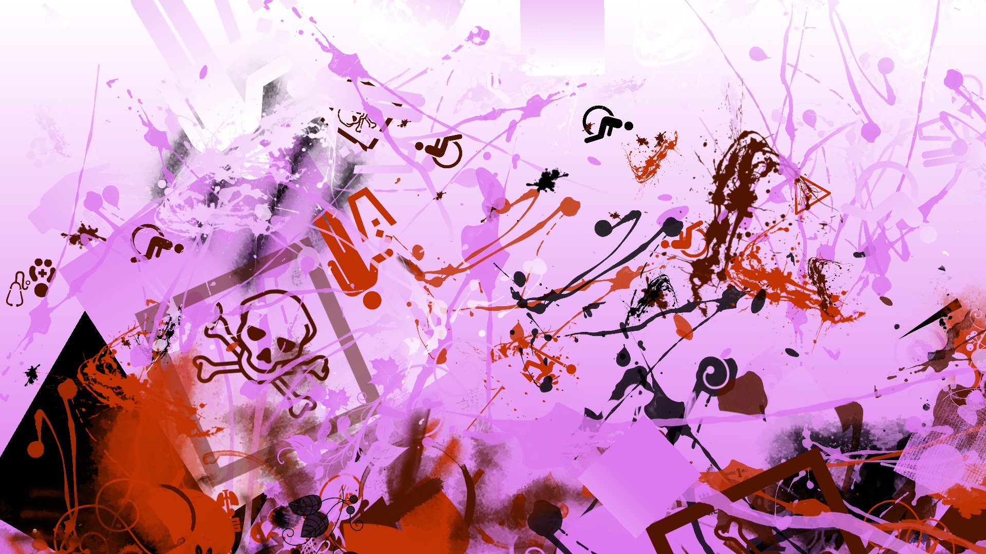 Description: A painting of a bunch of musical notes on a purple background with a black and red design on the bottom.