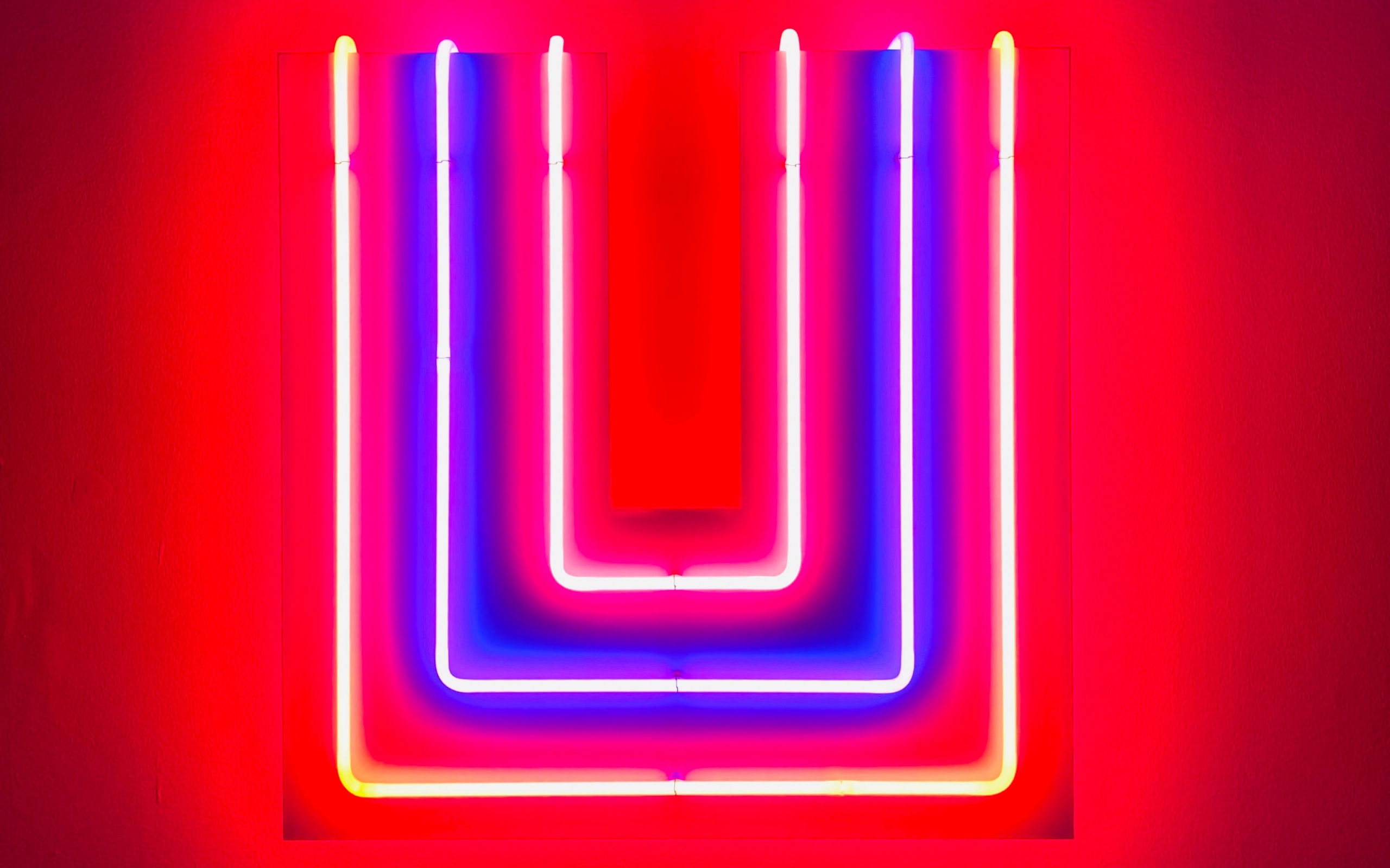 Description: A neon sign with a red background and a blue background with a red rectangle and a yellow rectangle.
