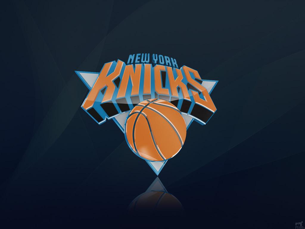 Description: A new york basketball logo on a dark background with a blue triangle and a basketball in the center of the image.