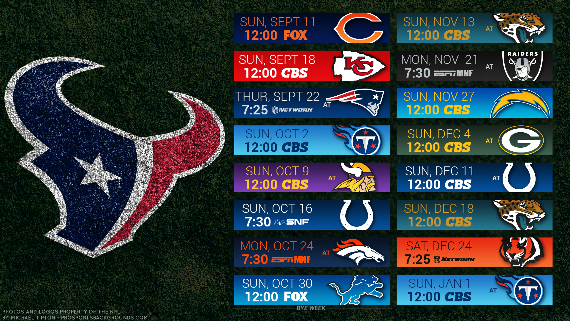 Description: A poster of the nfl teams on a field with the numbers of each team in the background and the date of each game.