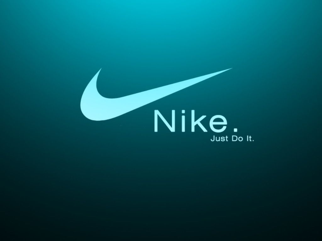 Description: A nike logo on a dark background with a blue glow behind it and the words nike just do it.