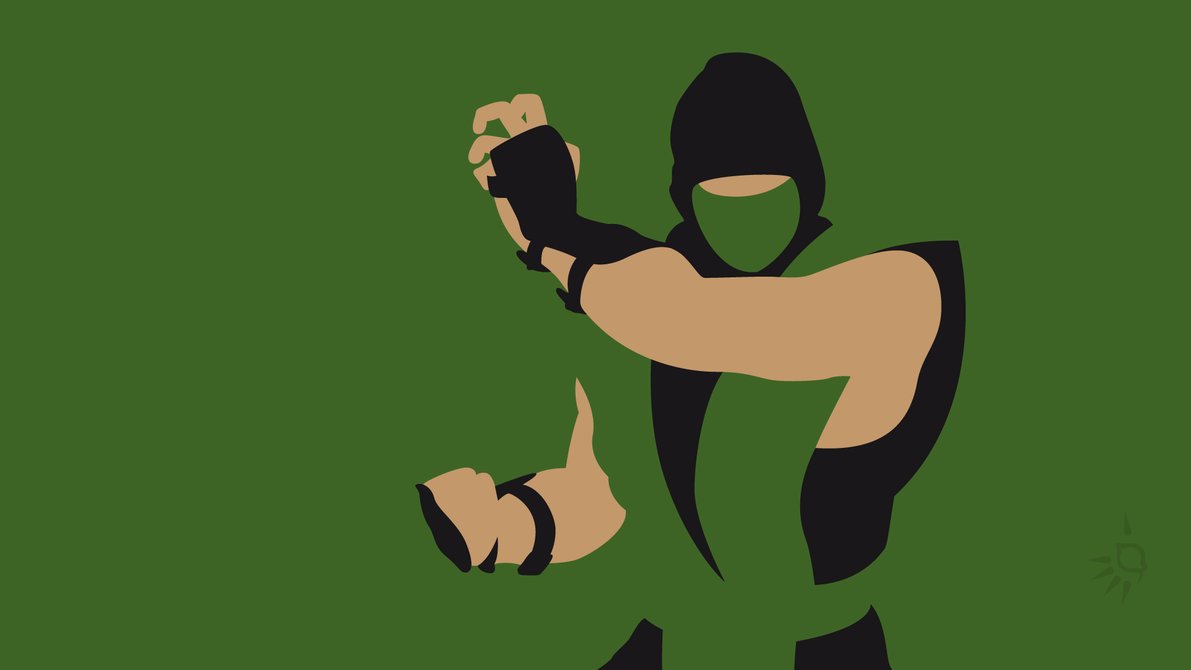 Description: A man in a ninja suit holding a fist up in the air with both hands up in the air.