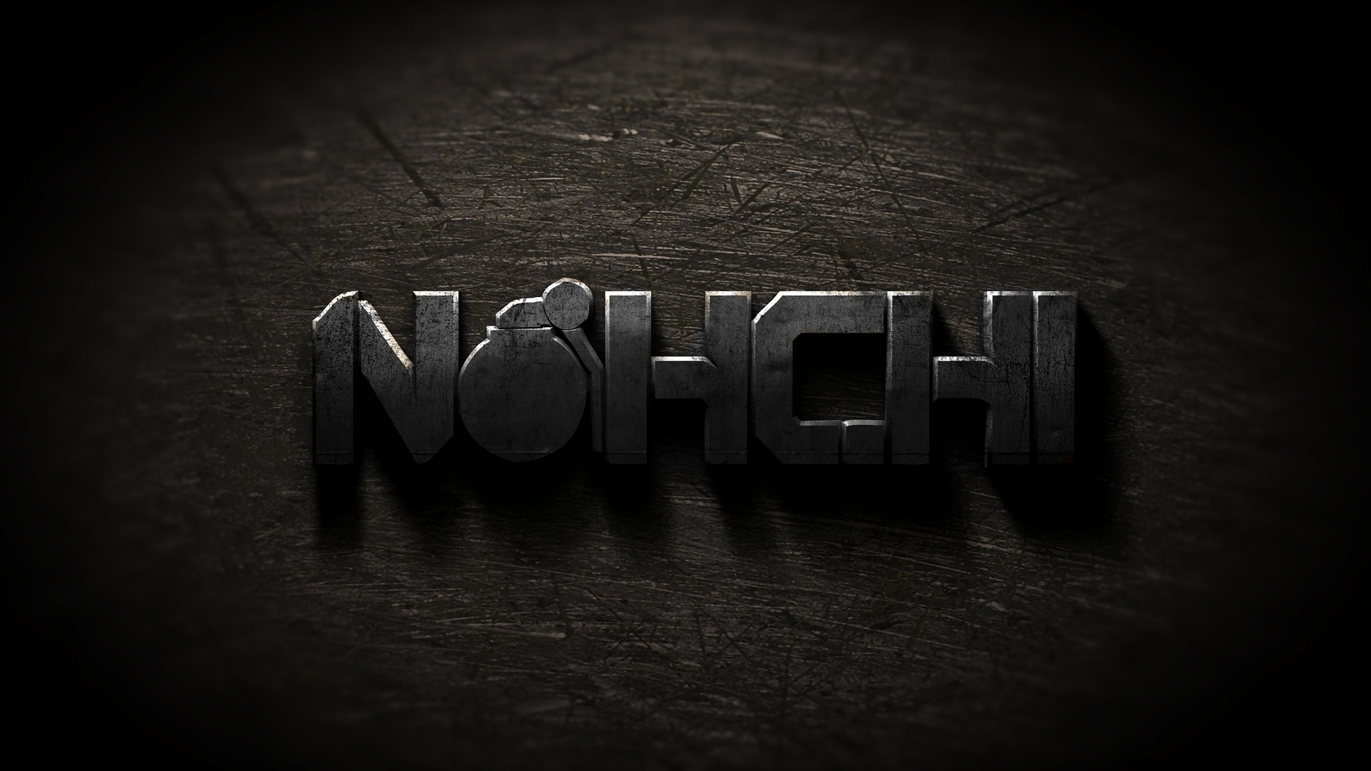 Description: A black and white photo of the word noh in metal type on a black background with a shadow.