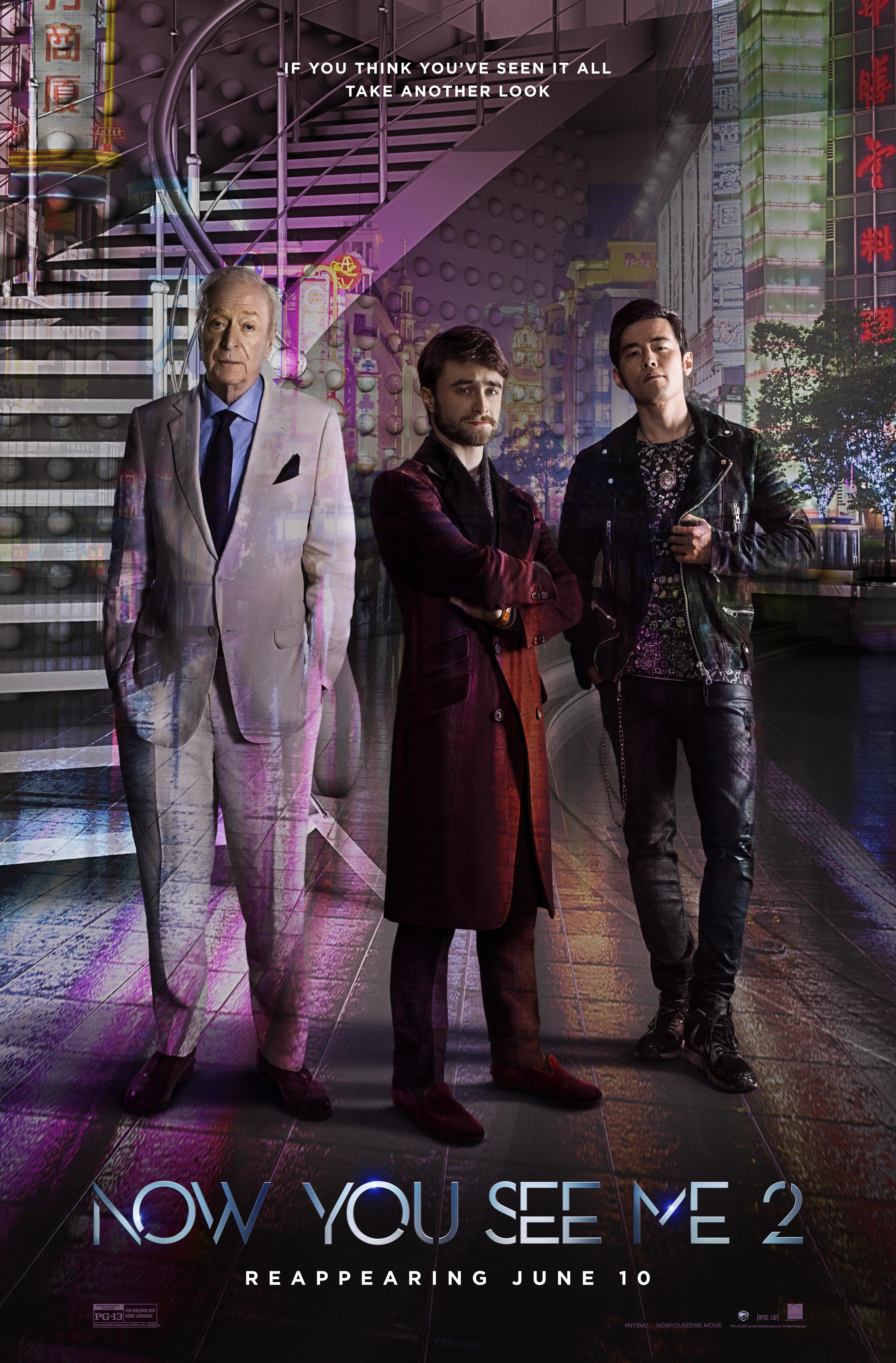 Description: A movie poster for now you see me 2 starring two men in suits and ties standing in front of a spiral staircase.