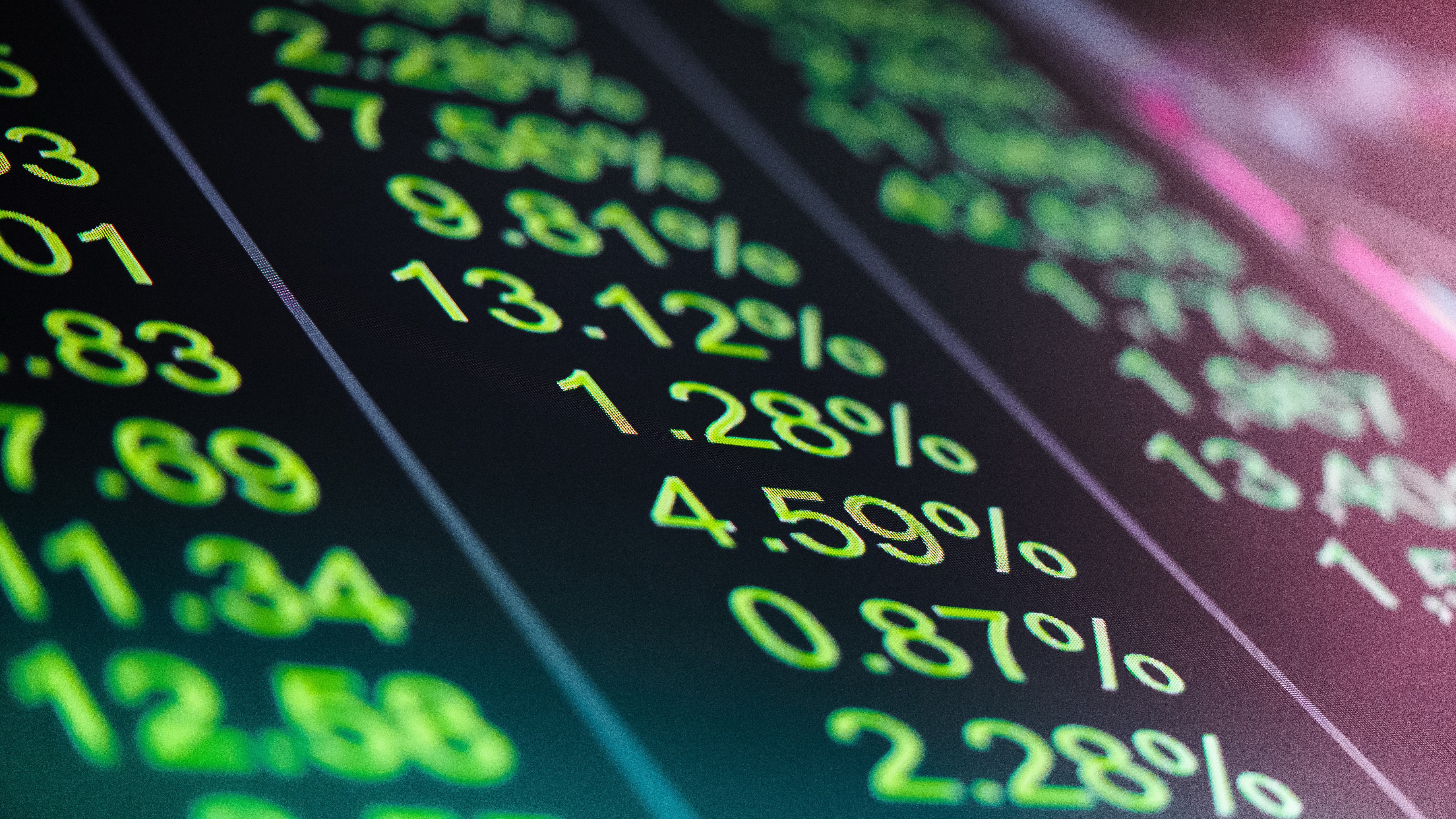Description: A close up of a number of numbers on a wall of numbers with green and pink colors and numbers.