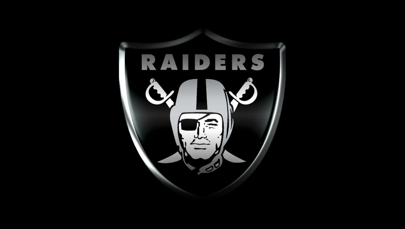Description: A oakland football logo on a black background with a black background and a white oakland football helmet on the front of the shield.