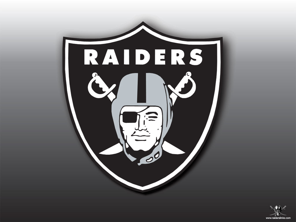 Description: A oakland football logo with a helmet on it's face and a beard on it's head.
