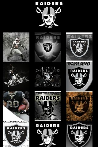 Description: A poster of the oakland football team's logos and their uniforms in black and white.