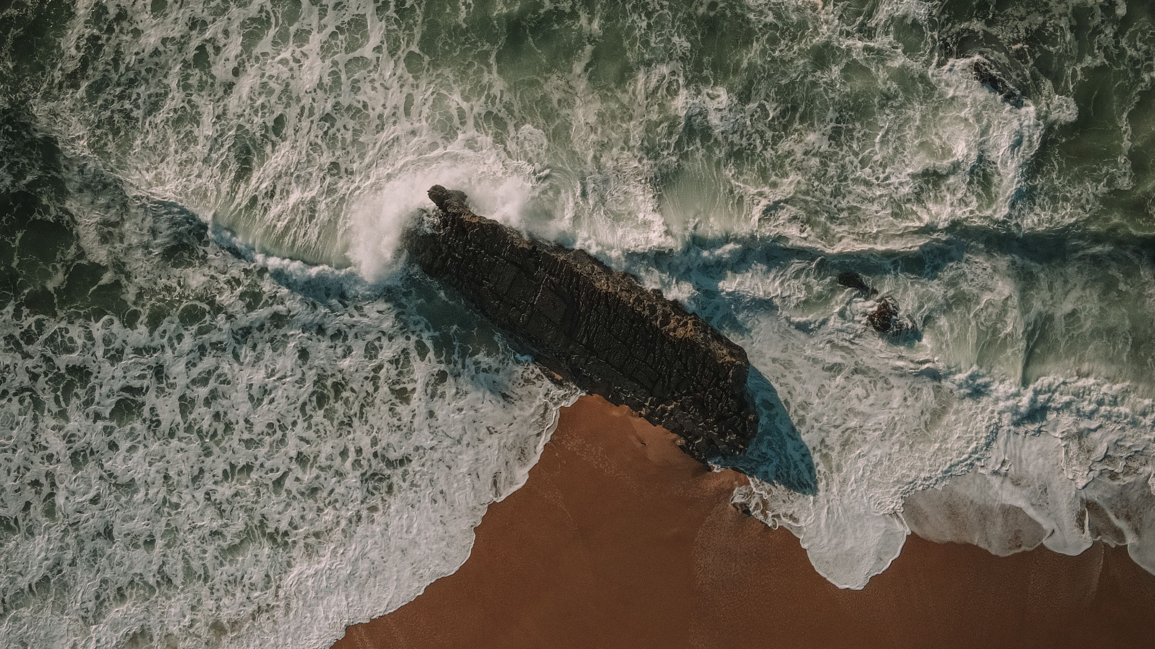 Description: A large body of water sitting next to a sandy beach on top of a sandy beach next to the ocean.
