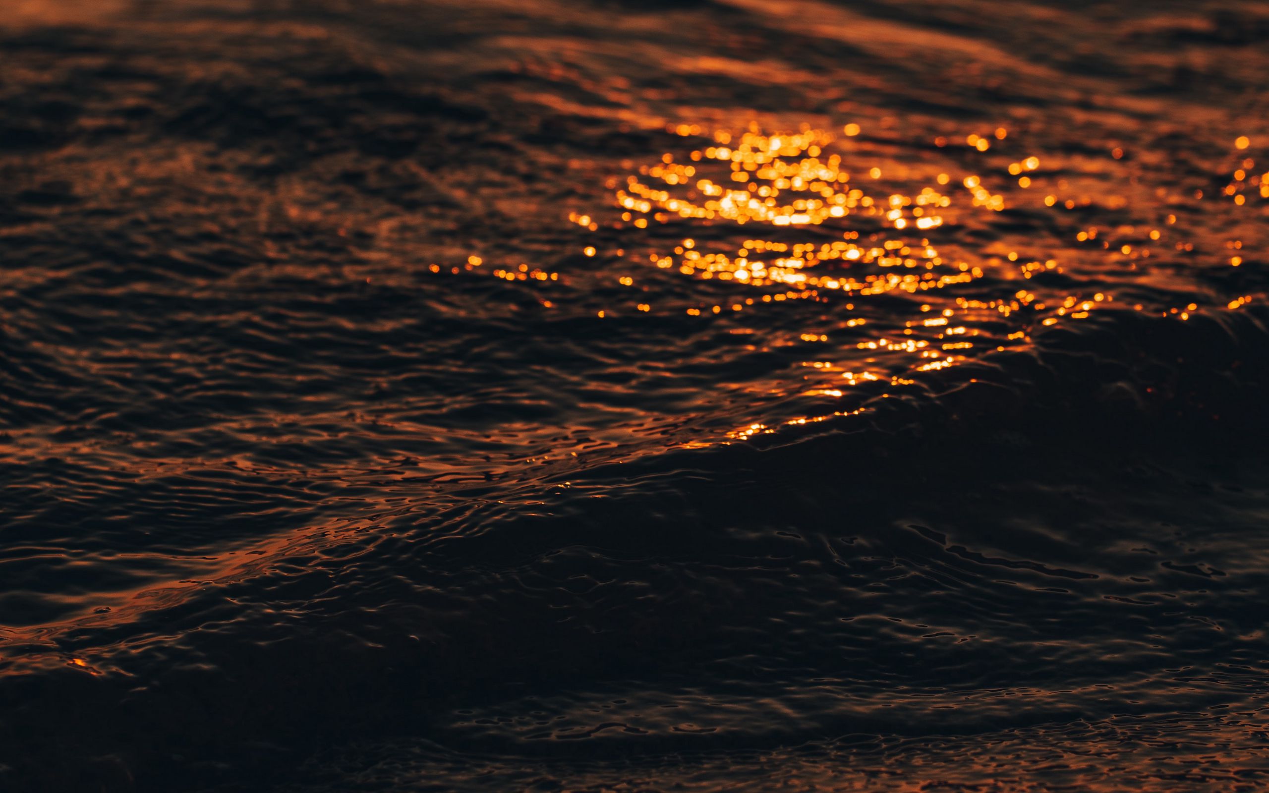 Description: A close up of a wave in the ocean at night time with the sun shining on the water and the waves.