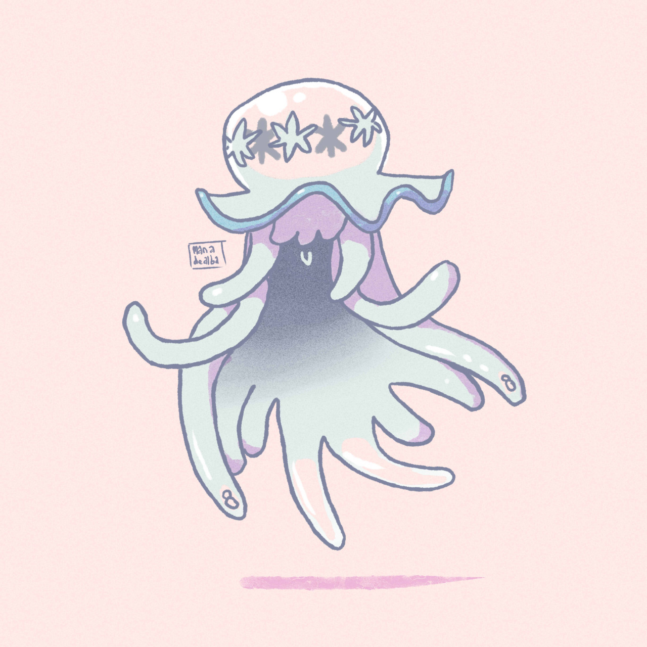 Description: A drawing of an octopus wearing a hat with stars on it's head and a starfish on its head.