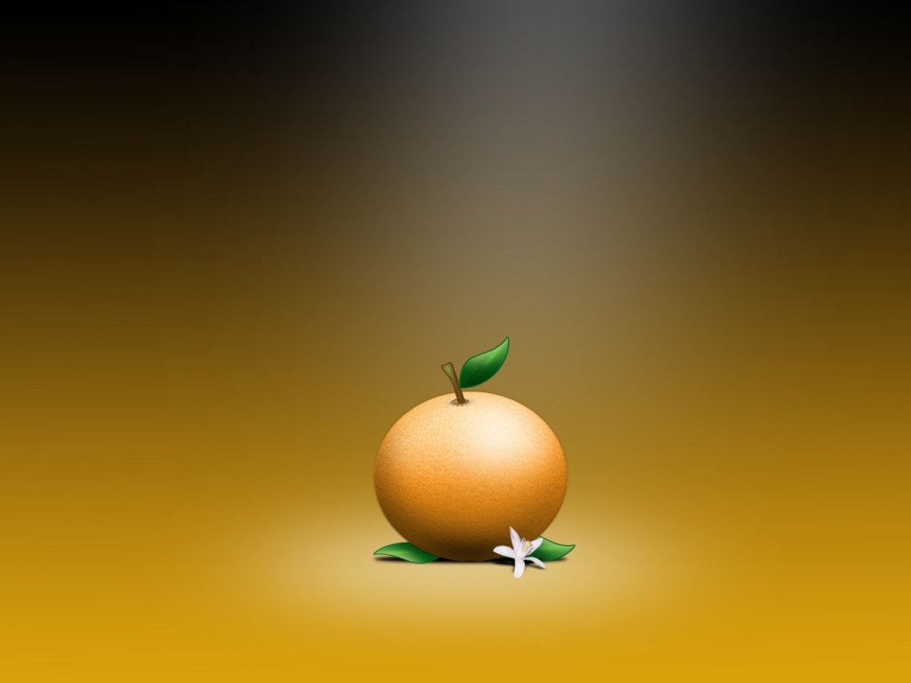 Description: A orange with a star on it sitting on a yellow background with a black background and a white star.