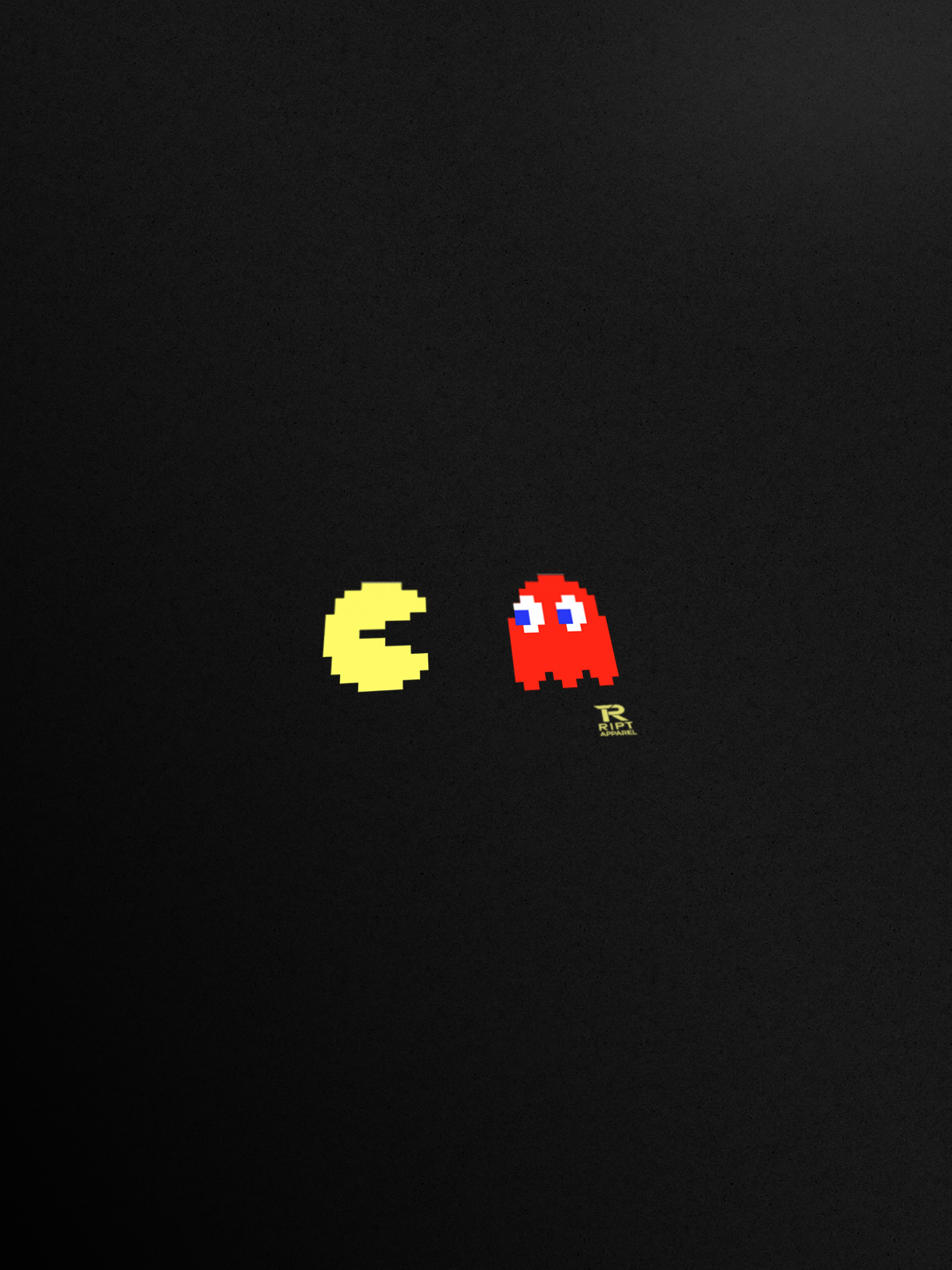 Description: A pixelated image of a pacman and a red pacman on a black background with a red and yellow pacman.