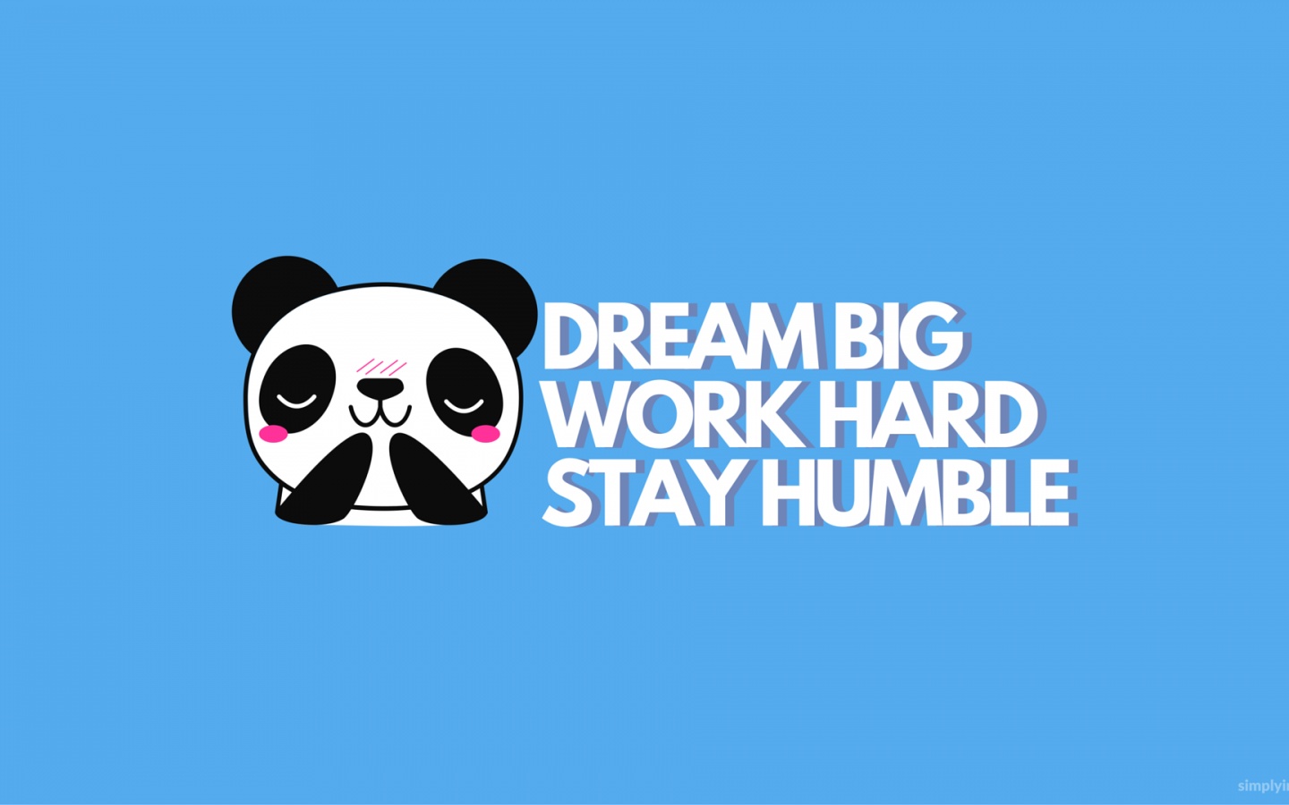 Description: A panda bear with a sad face and words that say dream big work hard stay humble on a blue background.