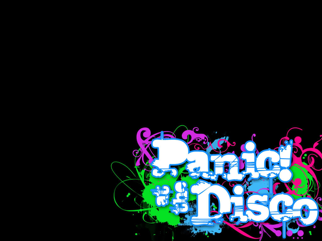 Description: A black background with a colorful text that says panic is disco on it and a black background with a colorful text that says disco.