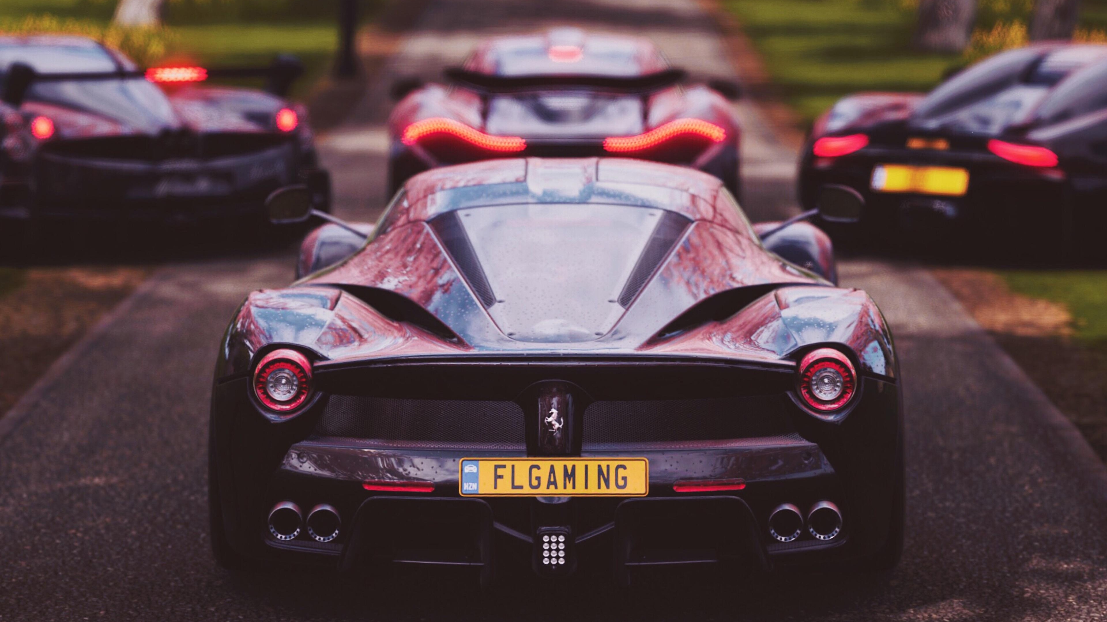 Description: A row of parked cars on a street next to a park area with grass and trees in the background.