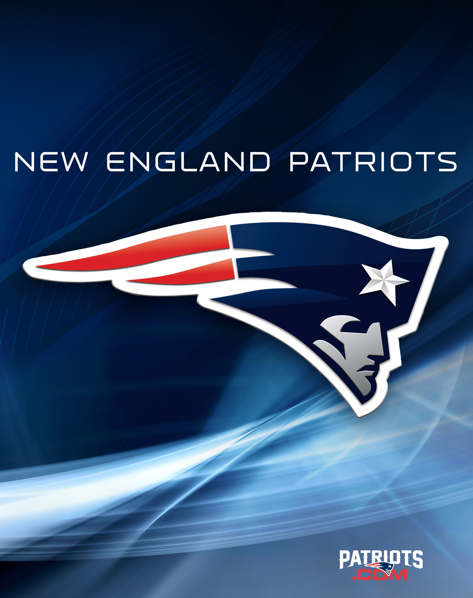 Description: A new england patriots logo on a blue background with a white star and a red and blue stripe in the center.