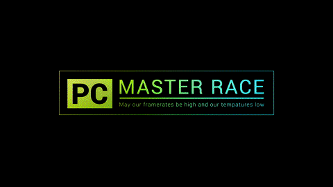 Description: A black background with a green and blue logo on it that says pc master race on it's side.