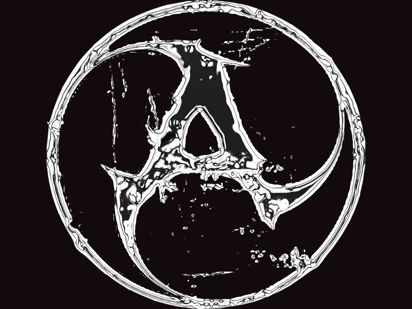 Description: A black and white photo of a peace sign in a circle with water splashing on it's surface.