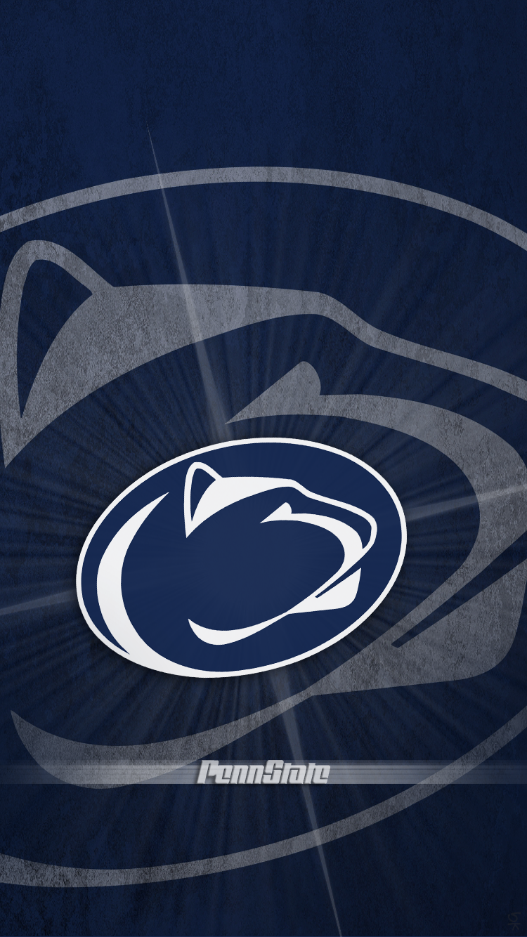 Description: A penn state logo on a blue background with a sunburst in the center of the image and a penn state logo on the bottom.