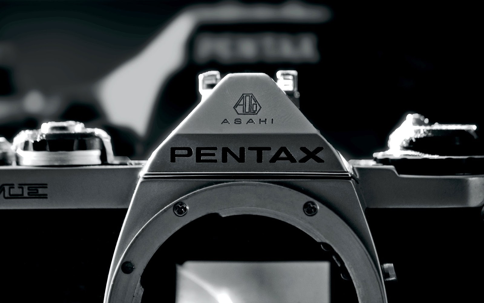Description: A pentax camera with a black and white background and a black and white photo of the camera.