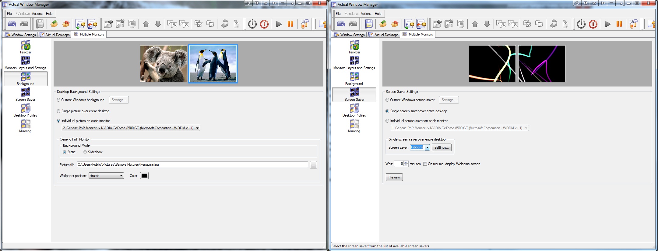 Description: Two screens of a web page with pictures of people and animals on them.
