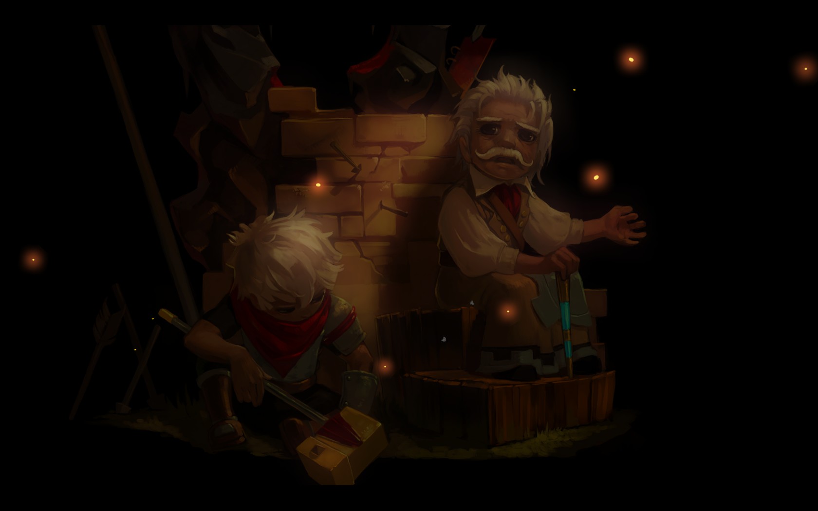 Description: A painting of two people in a barrel with a light shining on them and a brick wall behind them.