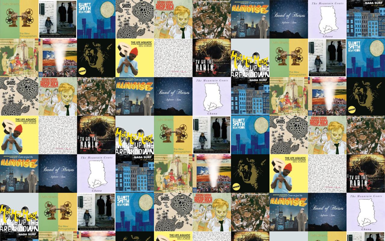 Description: A collage of images of various people and buildings in different colors and sizes.