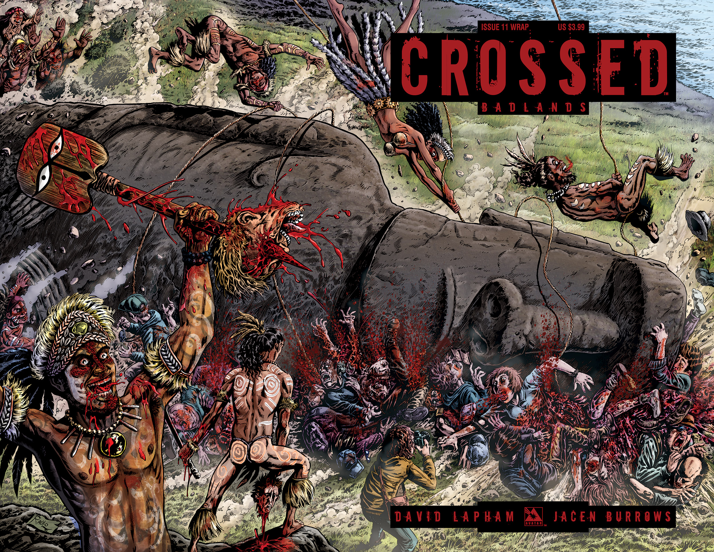 Description: A painting of a group of people with a cross on their head and a body of blood on their body.