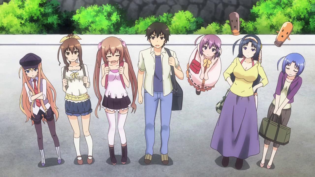 Description: A group of people standing in a line on a road with trees in the background and a rock wall.