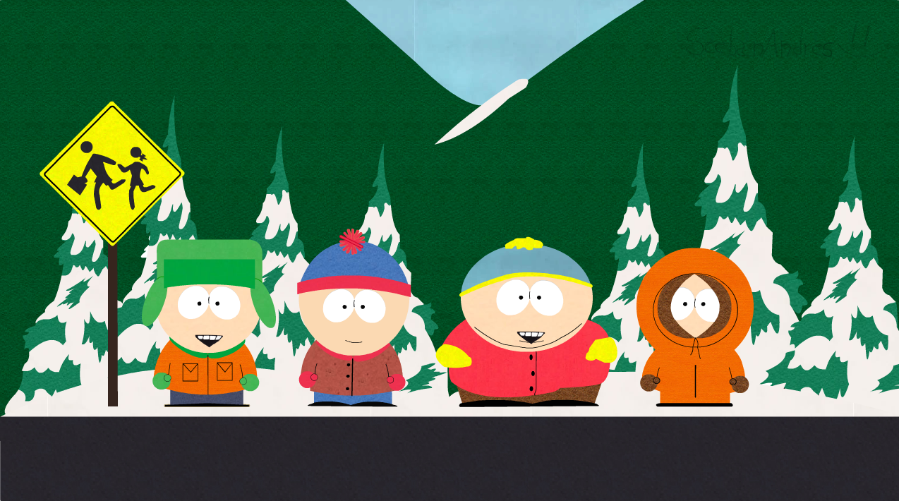Description: A group of people standing in front of a sign with a mountain in the background and a snow covered forest.