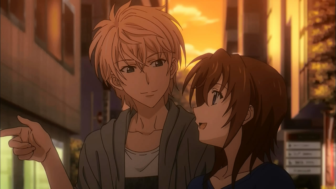 Description: Two people standing next to each other in a city street at sunset or sunset time.